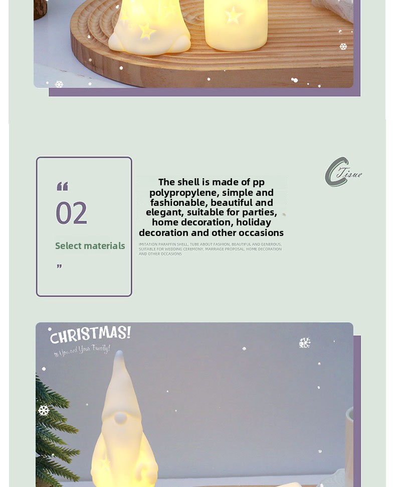 Creative Decor: Unique and stylish designs (e.g., Santa holding a star, scarf snowman) enhance room aesthetics.