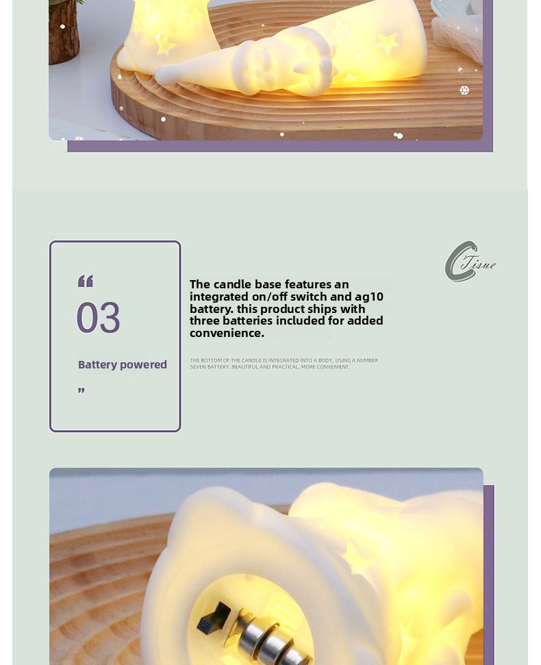 Festive Design: Christmas-themed night light with various characters like Santa Claus and snowmen, creating a warm holiday atmosphere.